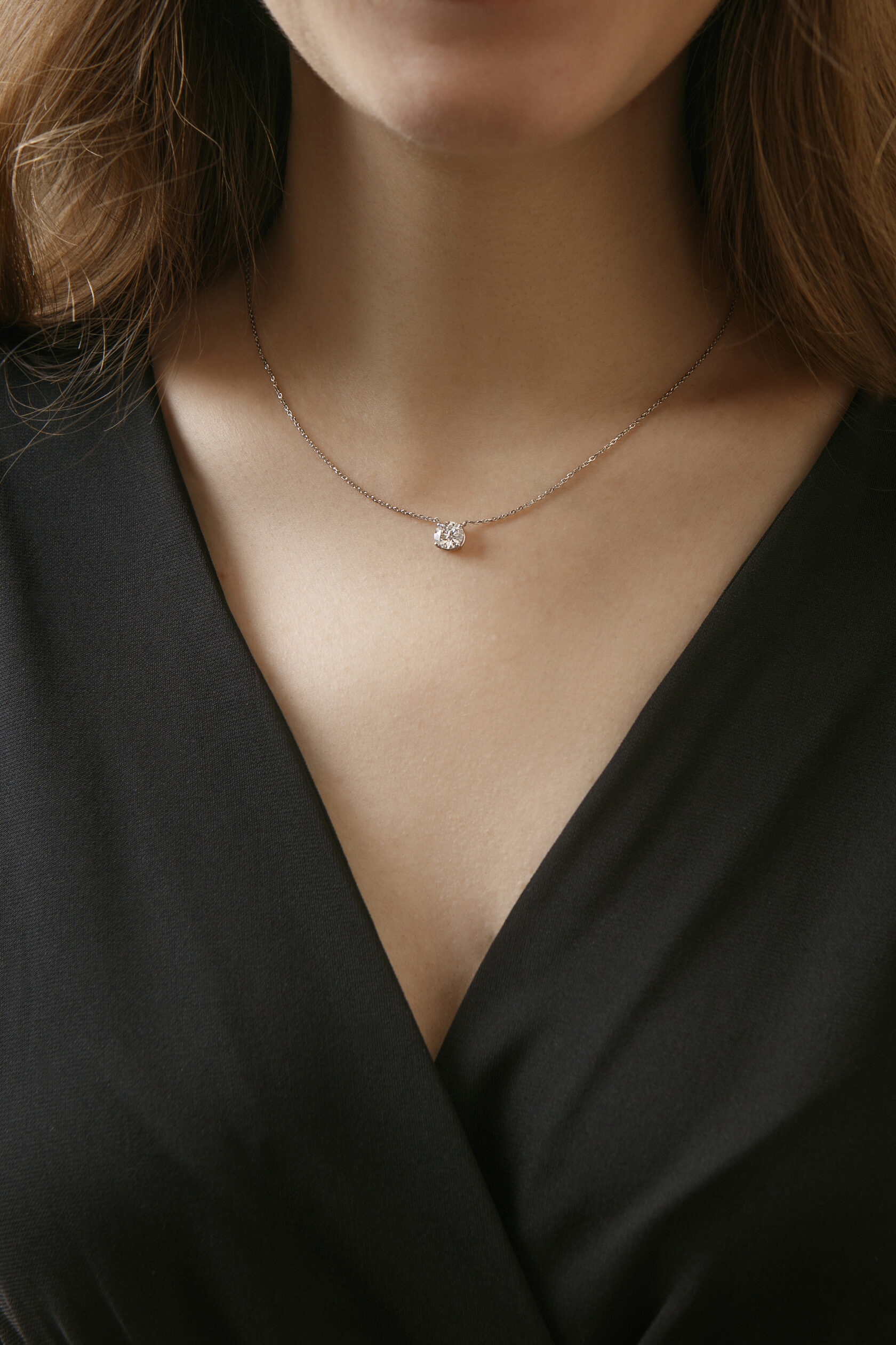 Украшение подходит к любому возрасту и стилю, прекрасно ложится на любую цепочку и красиво смотрится как соло, так и в сочетании с другими украшениями. Это идеальный вариант, если вы ищете что-то элегантное и абсолютно беспроигрышное. В Fashion Lab Diamond Atelier подвеску с круглым бриллиантом можно сделать как единое шейное украшение, когда подвеска и цепочка составляют одно целое, так и как самостоятельное украшение, которое можно надеть на Вашу цепочку.
