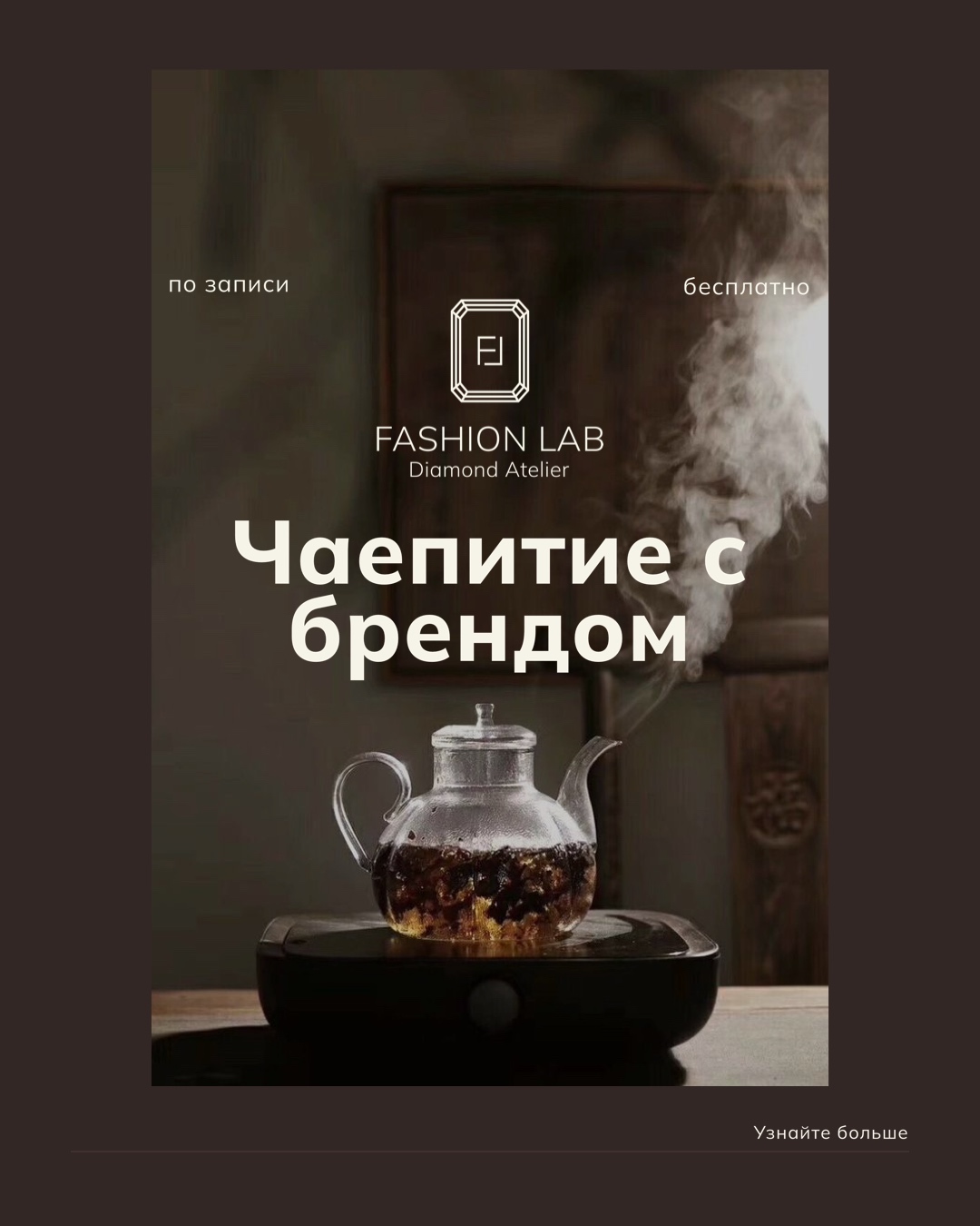 Именно поэтому мы создали особый формат тёплого, доверительного общения — чаепития с брендом. Это наши уютные встречи, где в спокойной атмосфере можно узнать всё о бриллиантах и примерить макеты украшений с ними, познакомиться с миром природных и выращенных бриллиантов поближе, а также соприкоснуться с миром Fashion Lab Diamond Atelier.